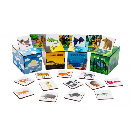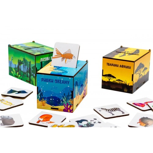 Гра-сортер "Чарівна Природа" для дітей від 3 років знайомить малюків з тваринами різних місцевостей. Чотири дерев'яні коробочки оформлені приємними для зору малюнками у вигляді африканської савани з баобабами, зеленого ... Читати далі...